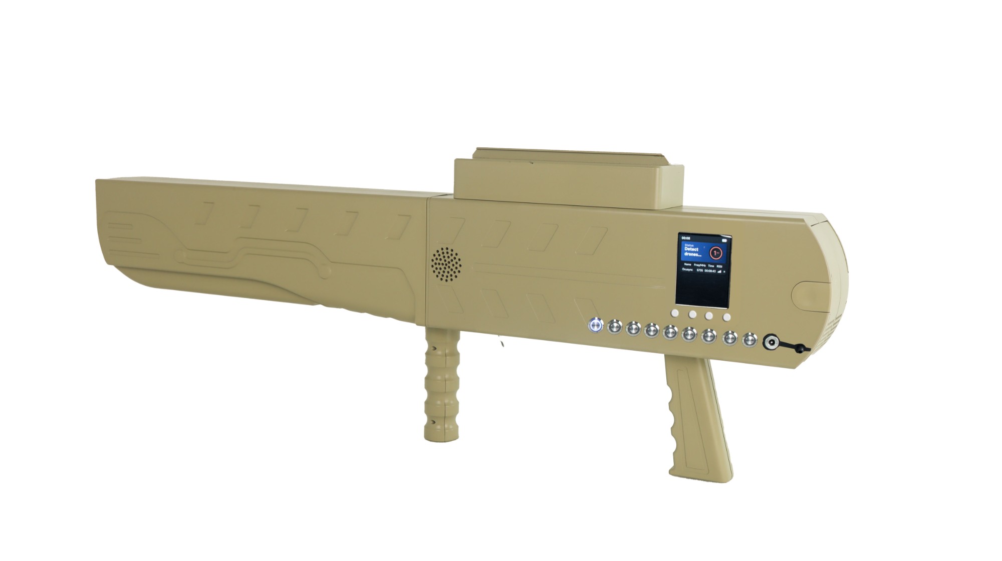 The handheld UAV detection and strike integrated equipment, as a portable UAV detection and strike integrated platform, integrates UAV detection, model identification, rough direction finding, and directional strike. Its principle is based on spectrum sensing and artificial intelligence technology to identify and classify the flight control link and image transmission link of UAV, and can conduct rough direction finding and accurate position acquisition for UAV, and can attack the intruder UAV based on radio interference technology to better guard low altitude safety.